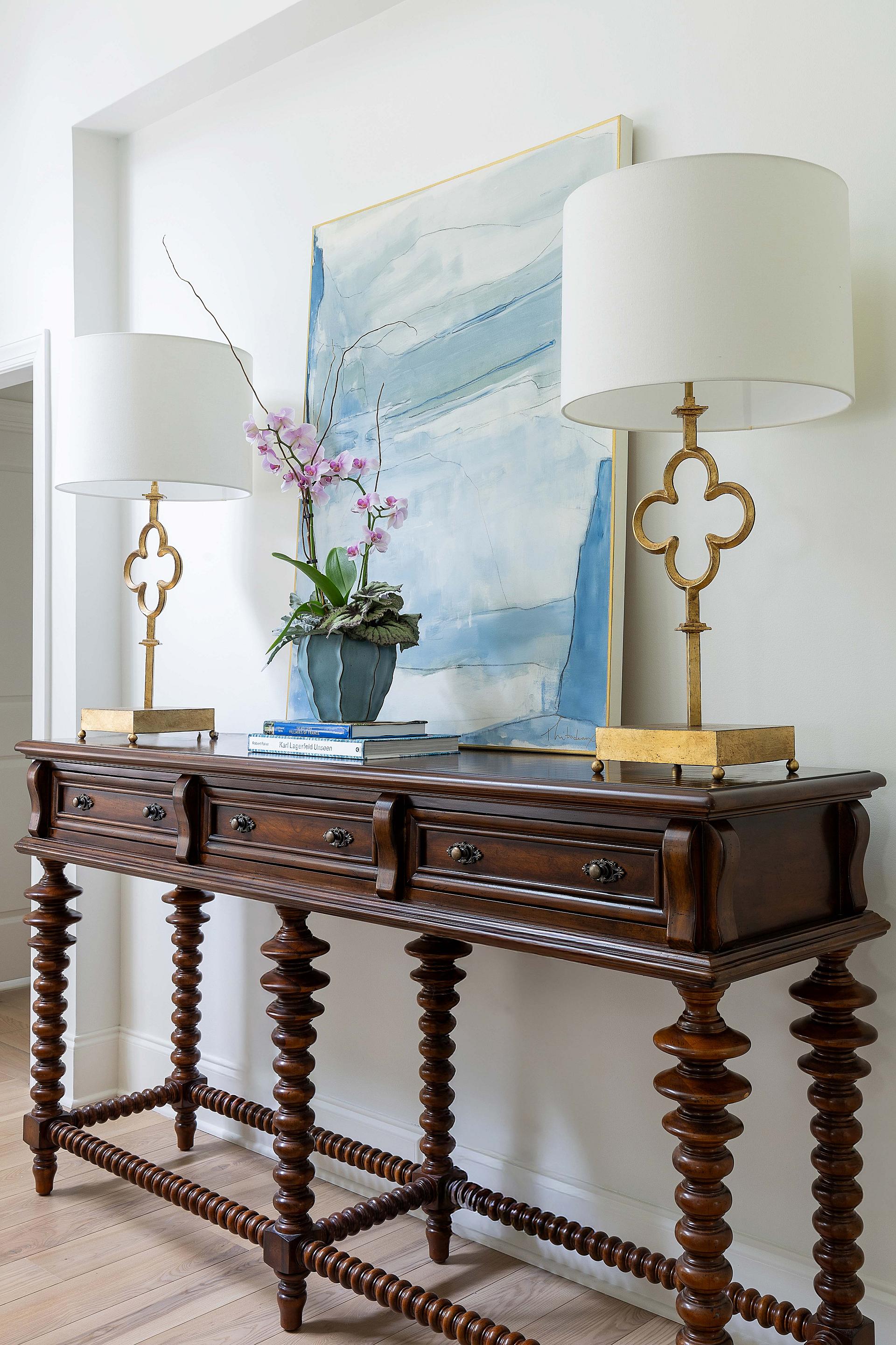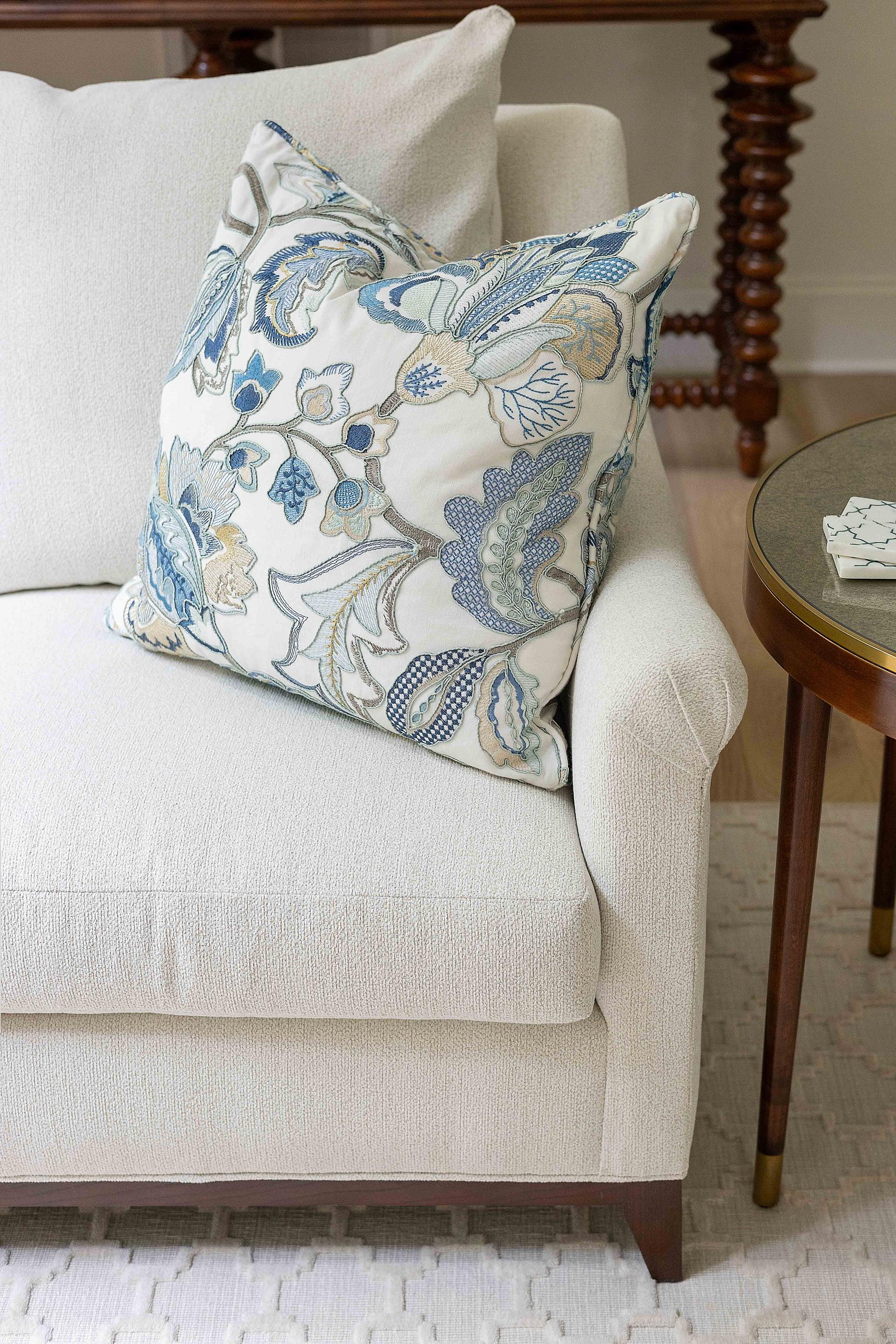 For this client, we renovated their home with fresh finishes and thoughtfully selected materials throughout the kitchen and bathrooms. We provided a full furniture package, seamlessly blending new pieces with a few of their original favorites to maintain a personal touch. A highlight of the project was mixing pieces from our curated art collection into the client’s existing collection, creating a seamless and cohesive look. In the bedroom, we added elegant picture molding and chose the perfect shade of blue to complete the serene, tailored retreat.