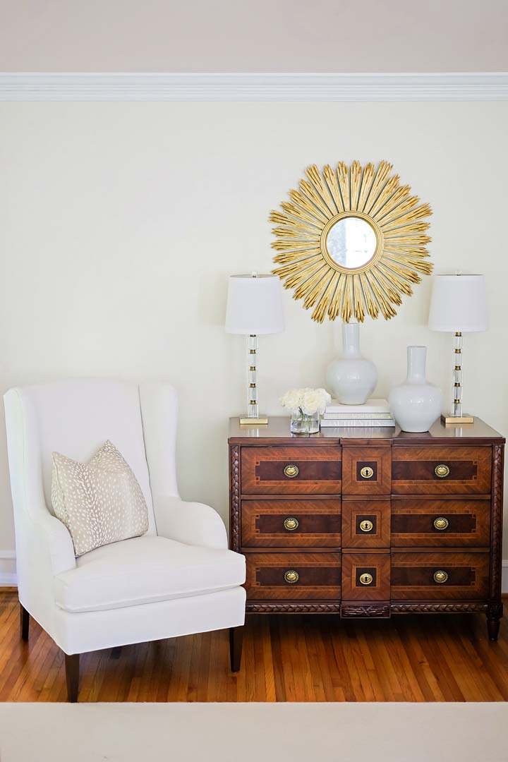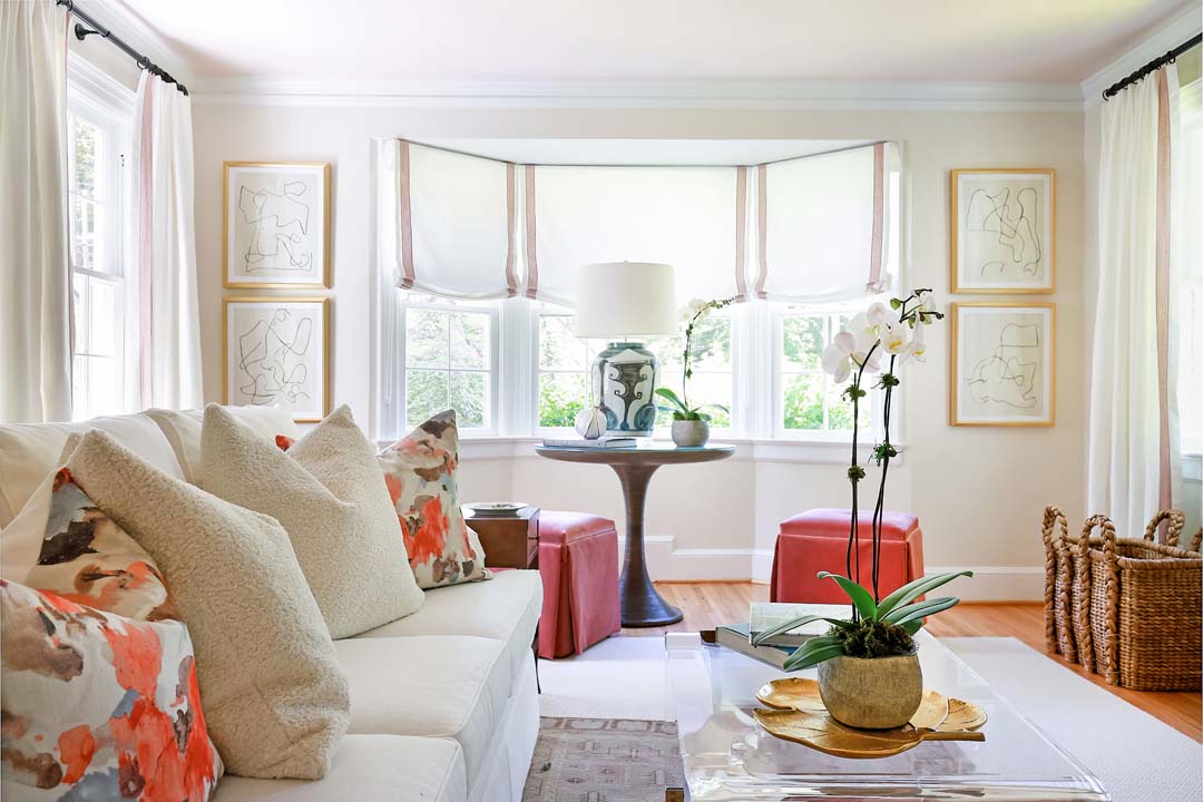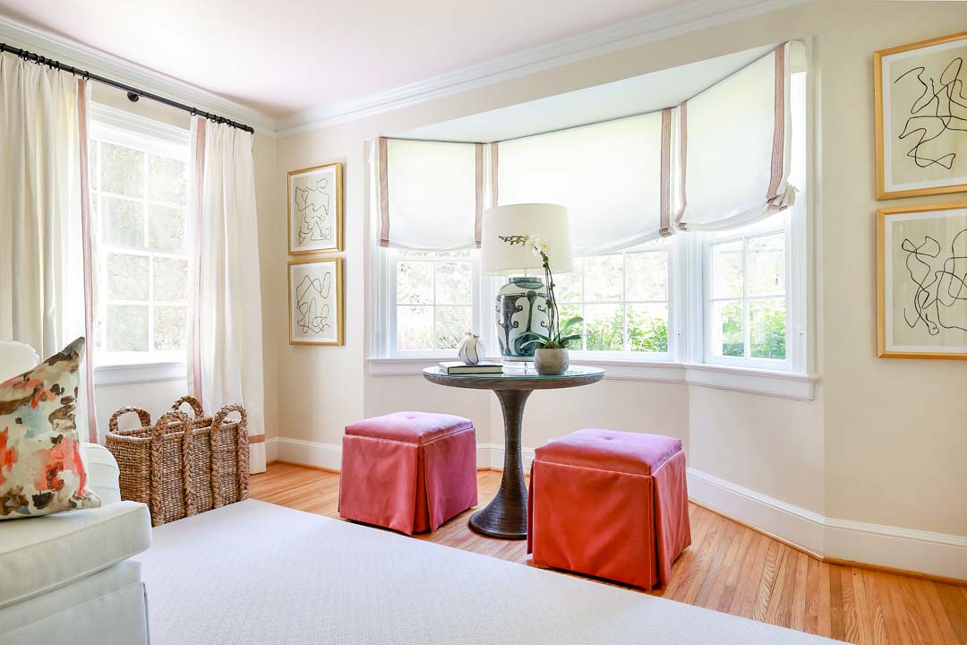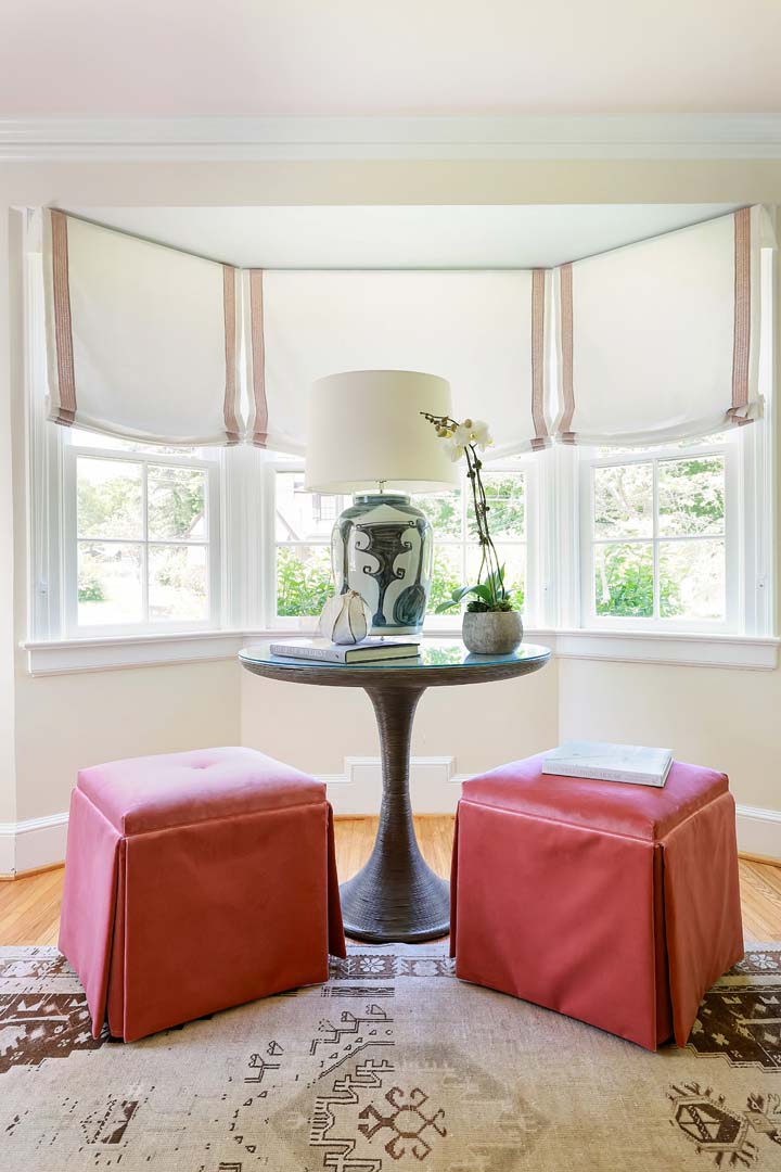 For this client, we drew inspiration from the feminine side of design, embracing romantic wallpapers, soft pinks, and delicate details throughout. The home is centered around a muted sense of romance, with a blush-toned ceiling and subtle yellow walls that create a warm, inviting atmosphere. From the moment you walk in, the space feels cozy and welcoming. We reupholstered the dining chairs, added new wallpaper, and layered in beautiful rugs to complete the look with softness and charm.