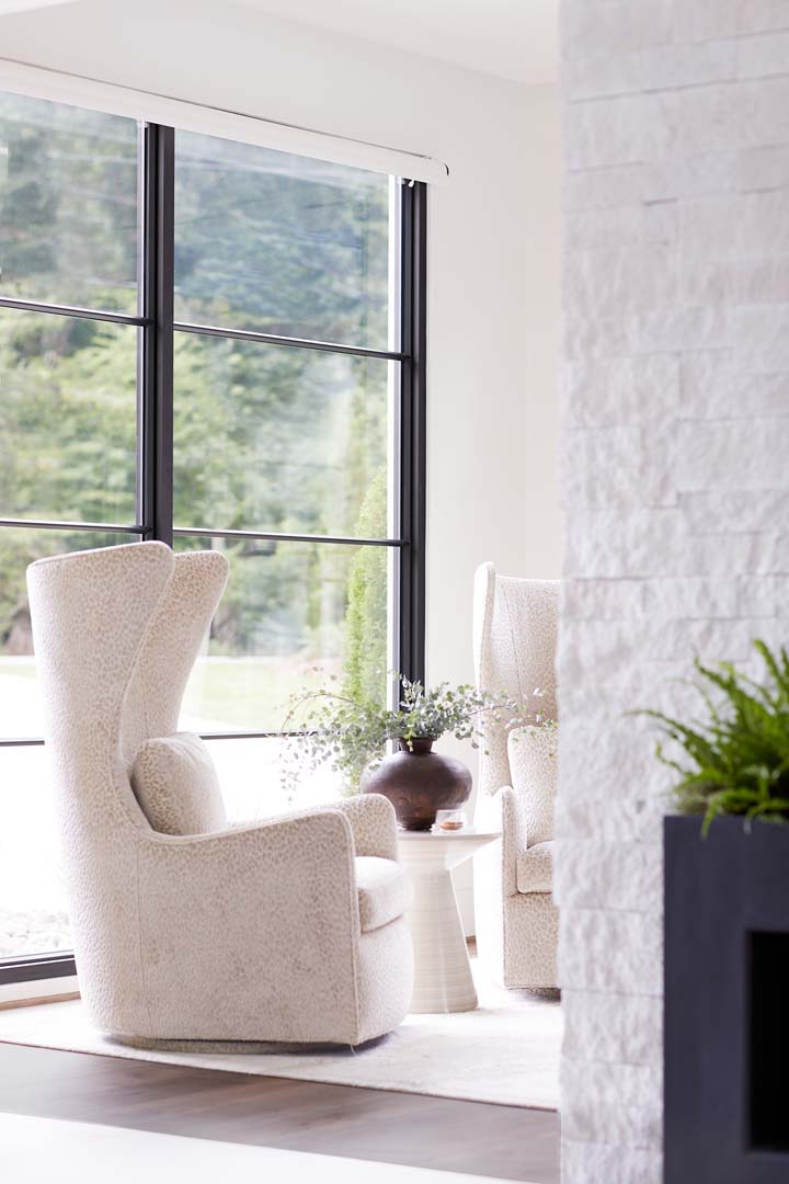 This project was a full custom build from the ground up, where we focused on creating a calming, clean-lined architectural moment using natural materials throughout. Warm wood tones and thoughtfully chosen fabrics added depth and softness to the minimal aesthetic. With a client who loves to entertain, an open floor plan was essential—and key to the home's inviting flow. We truly enjoyed collaborating with Wolfe Homes to bring this vision to life.