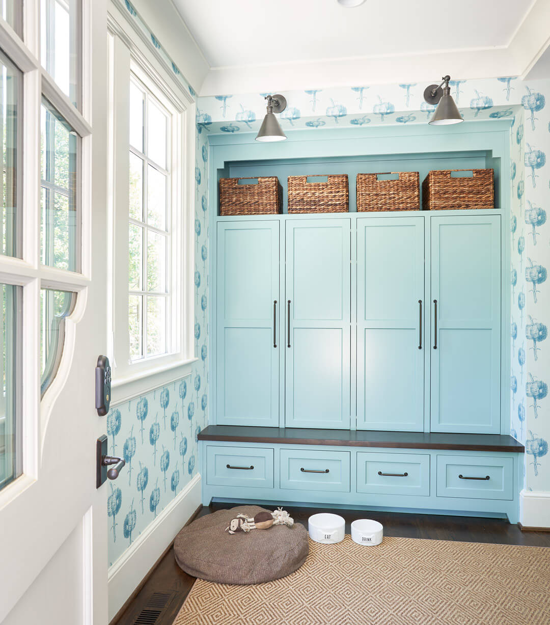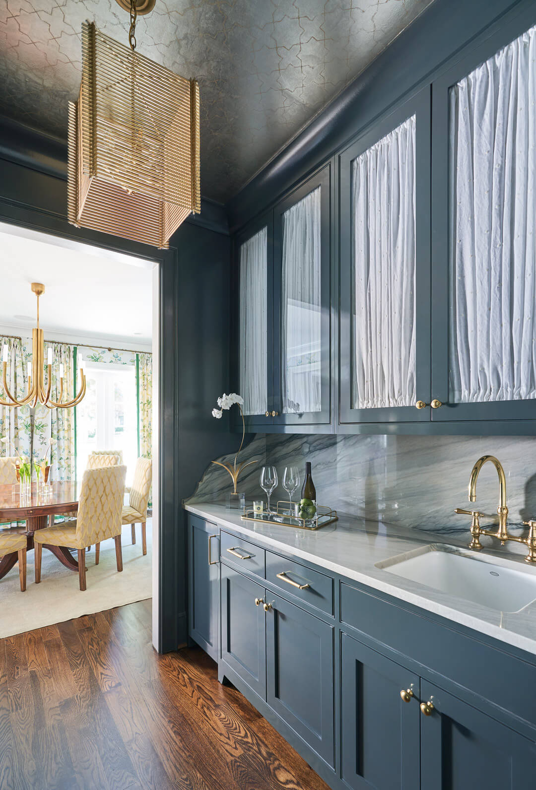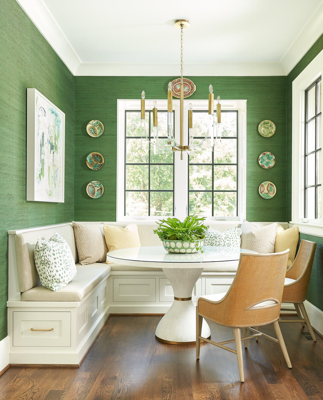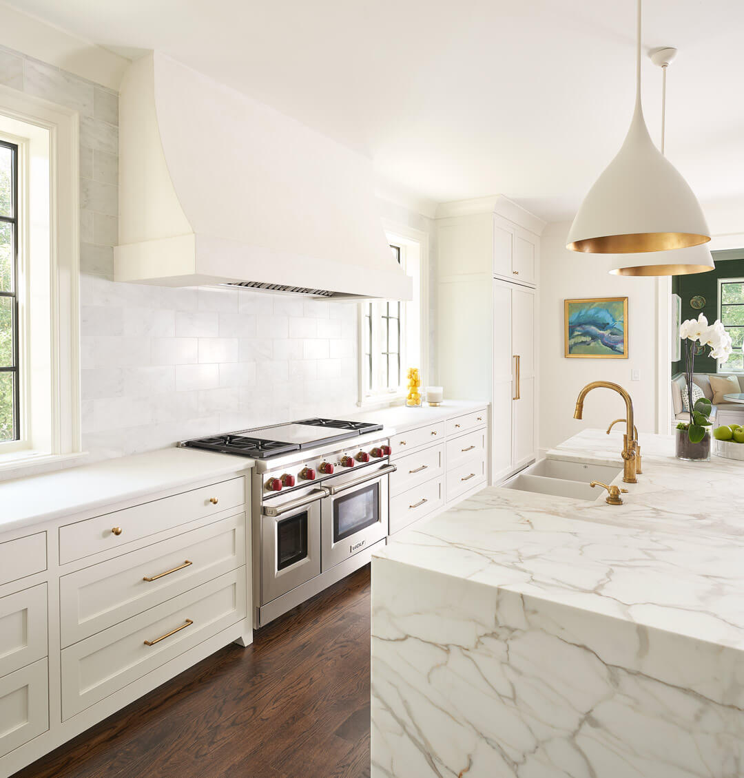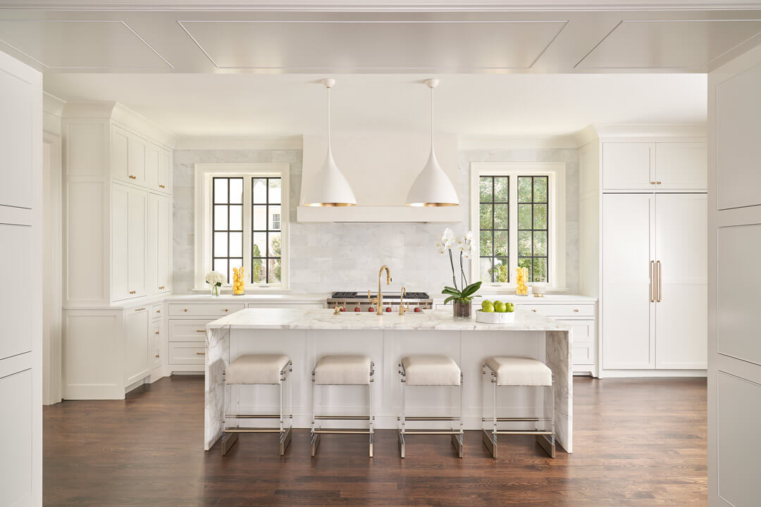 To create the ideal home for their growing family, this young couple chose to renovate and expand a home in Charlotte’s beautiful Myers Park neighborhood. With a 4,000 extension, the project encompassed about 9,000 square feet in total. They wanted their home to have a young, modern feeling, so we chose to create light-filled spaces composed of simple lines and bright colors. These modern touches became the backdrop for display of their well-loved family heirloom antiques. As the client loves the color green, you’ll find many shades and variations of this color throughout their home. The result is a peaceful, classic design that feels at once alive to the moment and rooted in tradition